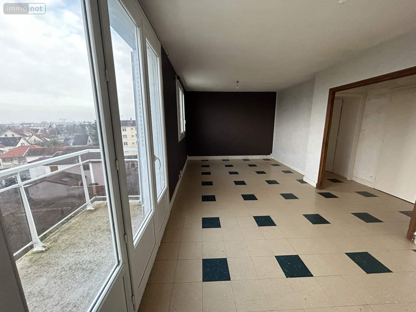 DIJON, Appartement - Appartement lumineux de TYPE 3 d'environ 68,46 m² avec vue dégagée sur parc situé au 4ème étage sans ascenseur et comprenant une entrée, une cuisine, un salon-séjour avec placard (23.31m²) donnant sur balcon , un couloir, deux chambres, une salle de douche et un WC. Cave. Chauffage au sol. Double vitrage PVC. Fibre.