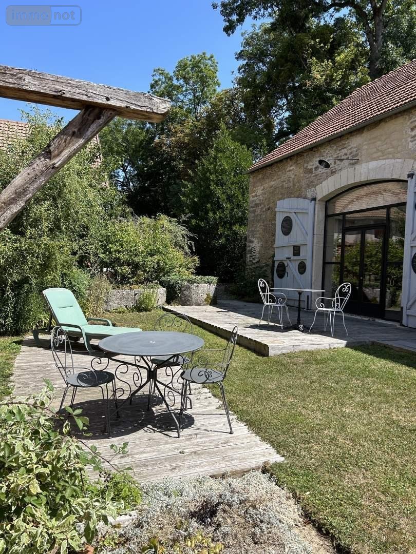 Cour et joli jardin clos et arboré avec plusieurs terrasses bois et un puits.