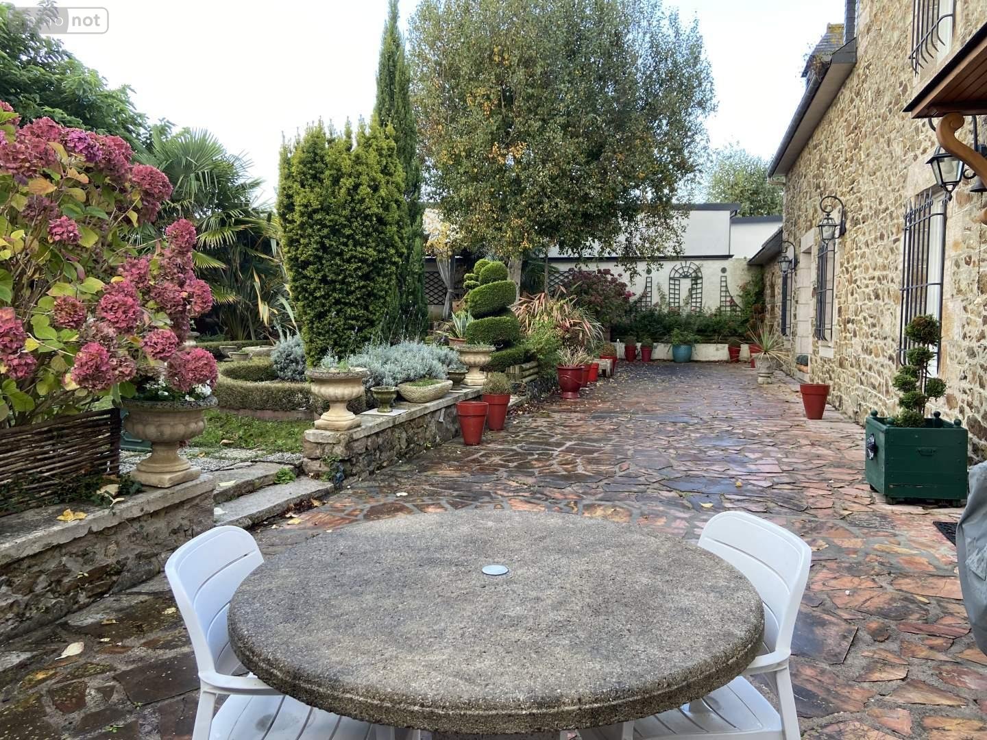 Plein bourg, au calme, magnifique propriété en pierres sous ardoises, mitoyenne d'un côté, comprenant :