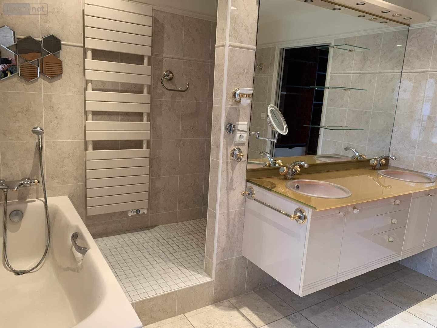 Au 1er étage : deux belles chambres, petite chambre ou bureau, salle de bains (douche, baignoire et wc), dressing, grande mezzanine avec coin bureau.