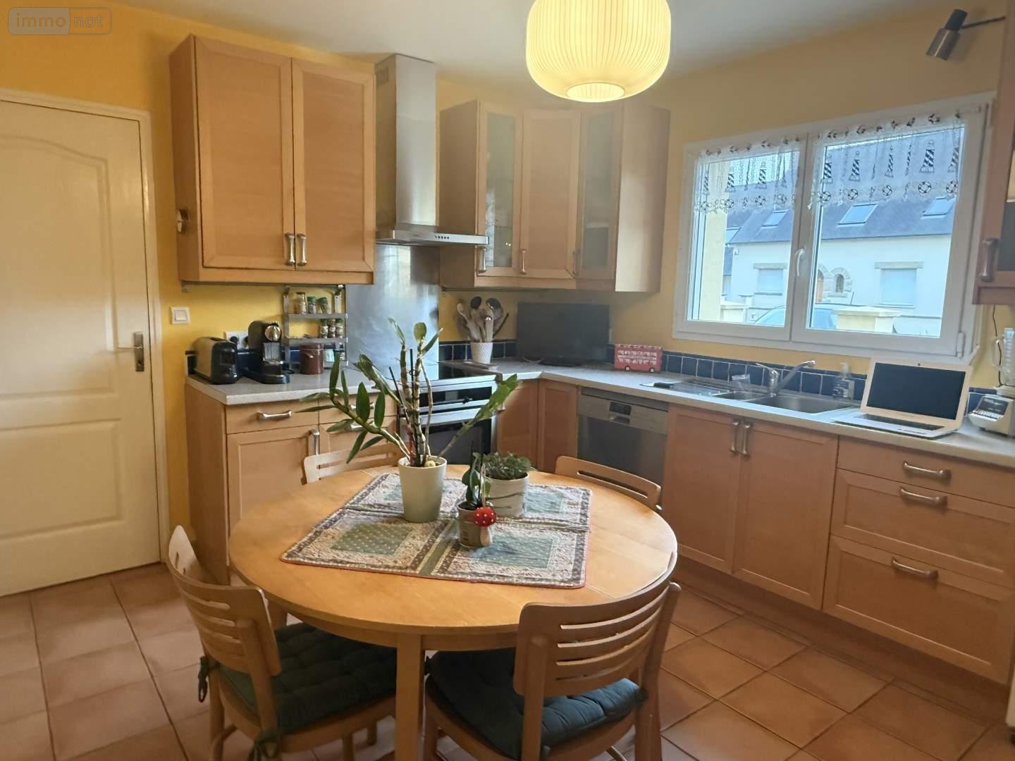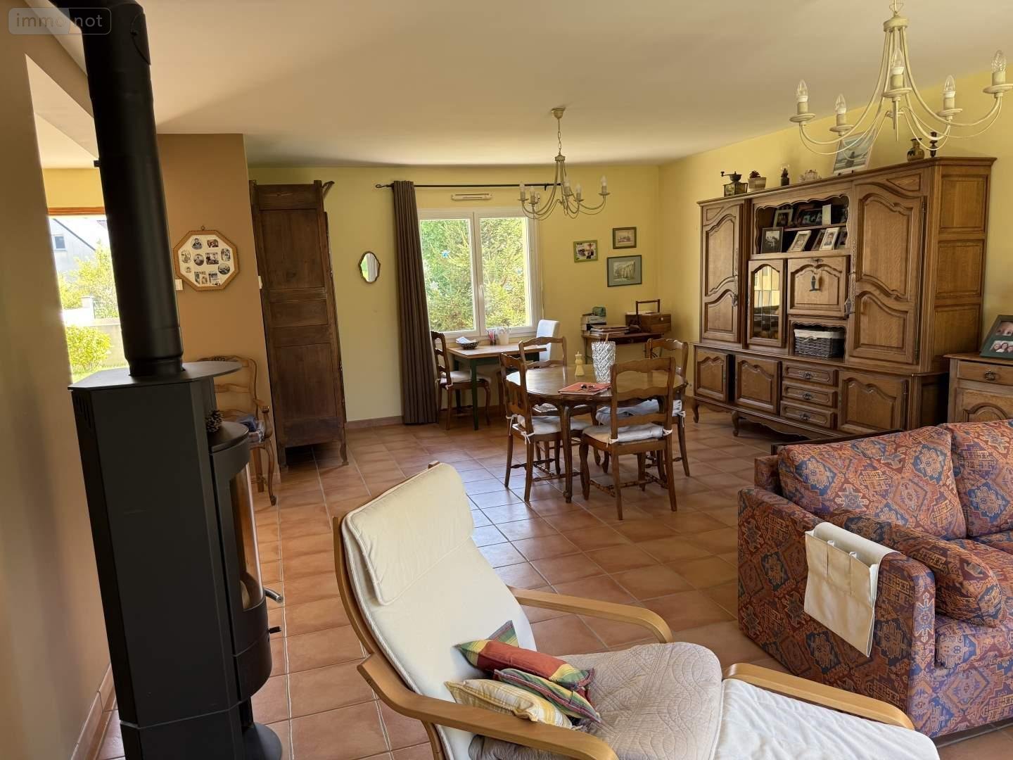 - Au rez-de-chaussée : entrée avec placard donnant sur séjour-salon avec poêle à bois, wc, dégagement, chambre avec placard, salle d'eau, cuisine aménagée et équipée. Garage à l'Est avec coin buanderie et grenier au-dessus.