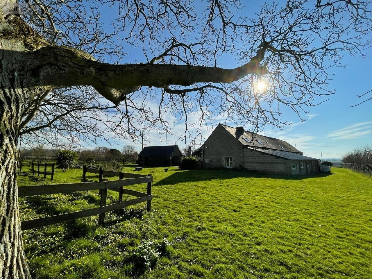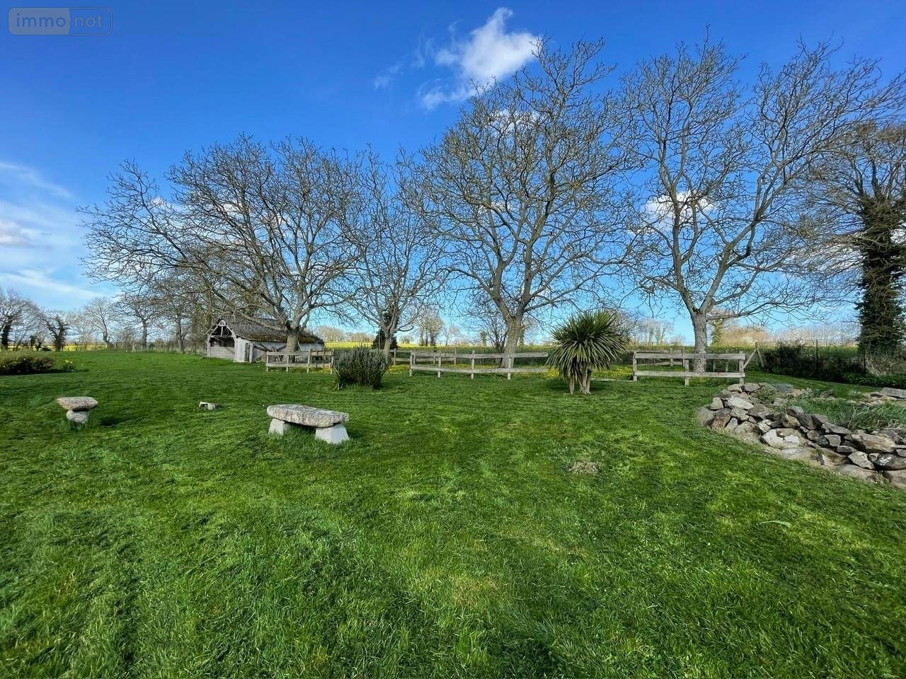 À l'extérieur, vous profiterez d'un grand jardin offrant une vue dégagée sur la campagne environnante.