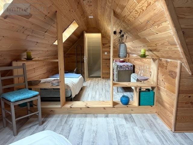 -A l'étage : deux chambres, un grenier, une salle de bains avec douche et WC