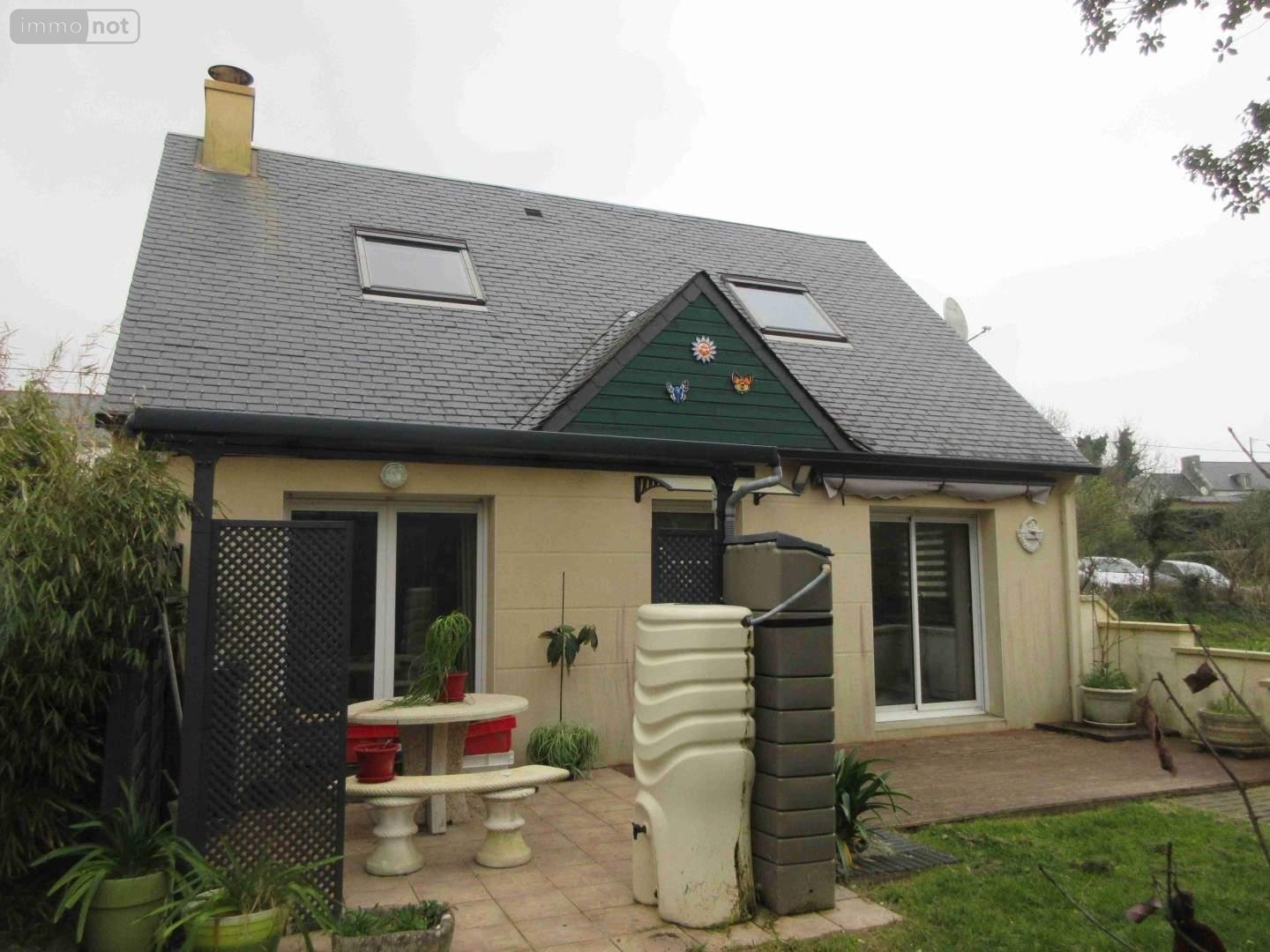 Réf. 3722 : PRIMELIN, Quartier Calme, Proche Mer, Maison édifiée en 2006, offrant cuisine aménagée ouverte sur séjour avec poêle à bois, 3 chambres dont une au RDC. Terrasse. Jardin avec cabanons. Le tout sur 595 m² environ.