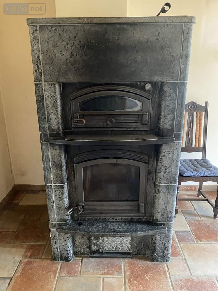 une entrée dessert : une cuisine fermée , une pièce séjour avec un poèle à bois , une chambre ,une salle de bain+wc.