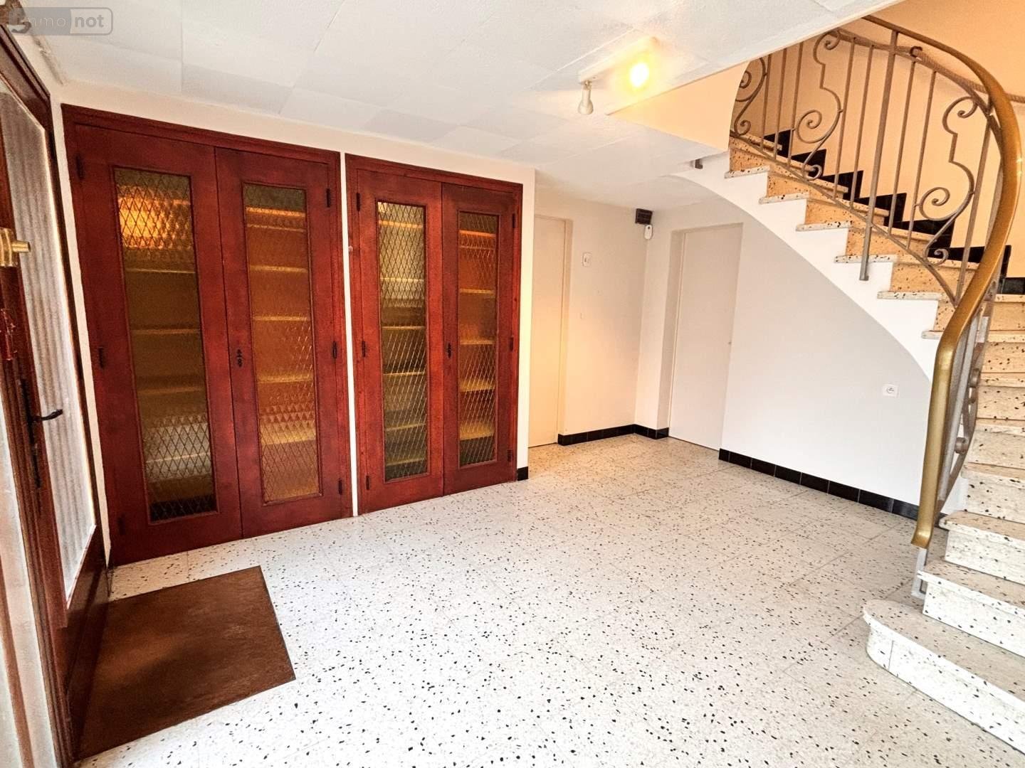 - au 1er niveau (2.60m sous plafond) : palier avec placard, cuisine A/E récente, wc, séjour-salon avec cheminée insert ouvrant sur terrasse orientée Sud-Est, dégagement avec placard, salle d'eau, deux chambres ouvrant sur balcons, débarras.