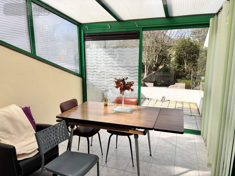 - A l'étage (58 m² hab. env. hors véranda), dégagement, séjour, deux chambres, w.c, salle d'eau, cuisine ouvrant sur véranda (9.50 m²) et terrasse en prolongement.