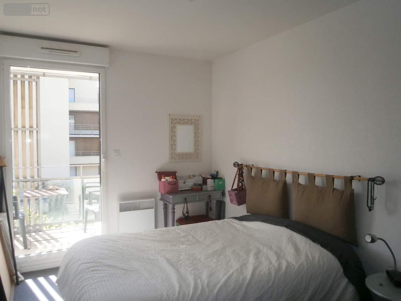 Il comprend : une entrée avec placard, un séjour donnant sur une spacieuse terrasse, cuisine aménagée et semi équipée (four, hotte, plaques de cuisson vitrocéramique, rangements et plan de travail), deux chambres dont une avec placard, salle de bains et WC séparé. Exposition OUEST. Garage fermé en sous-sol.
