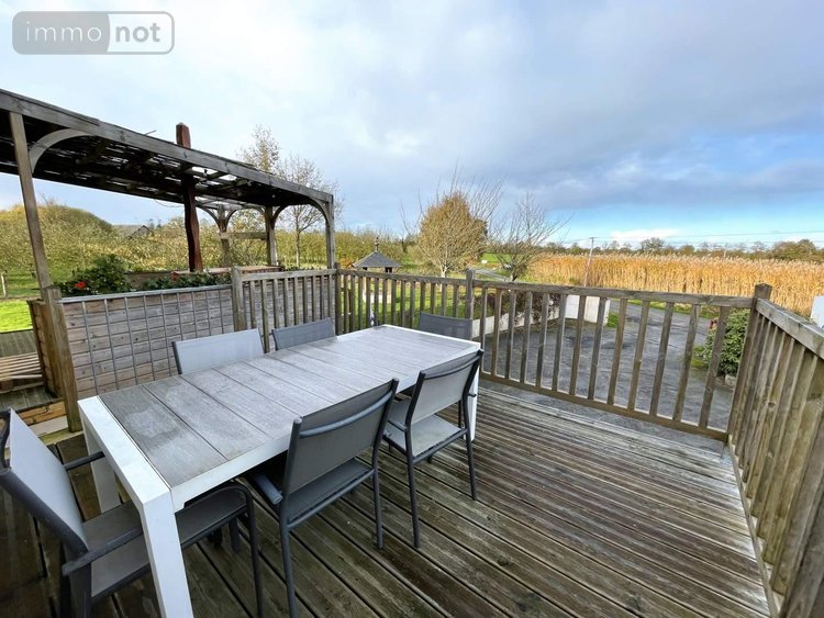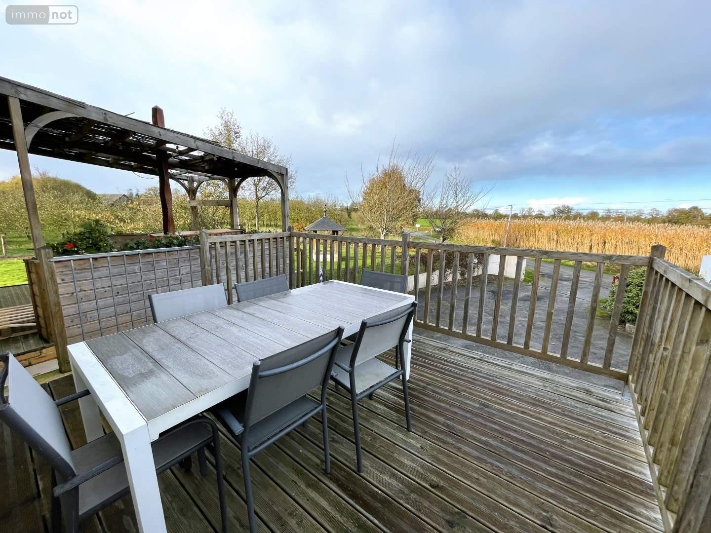 Double terrasse en bois avec vue dégagée sur la campagne environnante.