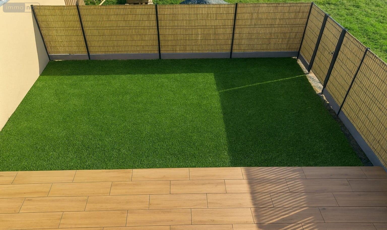 Jardin entièrement clos avec terrasse sur plots imitation bois, exposé plein Sud.