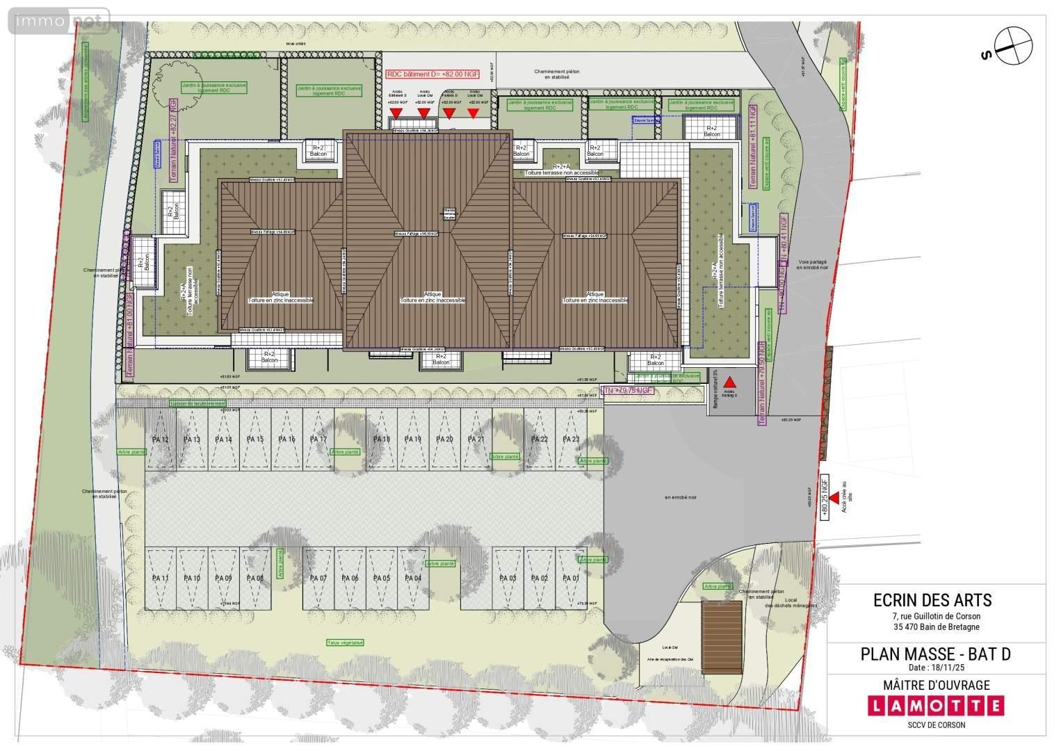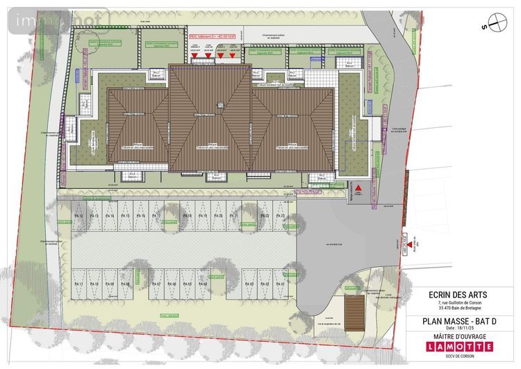 BAIN DE BRETAGNE, L'ÉCRIN DES ARTS, nouvelle résidence de 40 logements, située entre les commerces du centre ville et le cadre privilégié de l'étang, pour habiter ou investir, du T2 au T4 aux prestations soignées (ascenceur, balcon/terrasse/jardin privatifs, vidéophone,volets motorisés..), de 37 à 81m² avec stationnement. Livraison 2ème trimestre 2028. Une réalisation LAMOTTE PROMOTEUR-CONSTRUCTEUR. Pour information, joindre Loïg JOYEUX 06 20 02 24 53. Prix à partir de (Appt T2 D0001) 146 000 €, Hon. Négo charge Vdr. - Réf : 136/5190