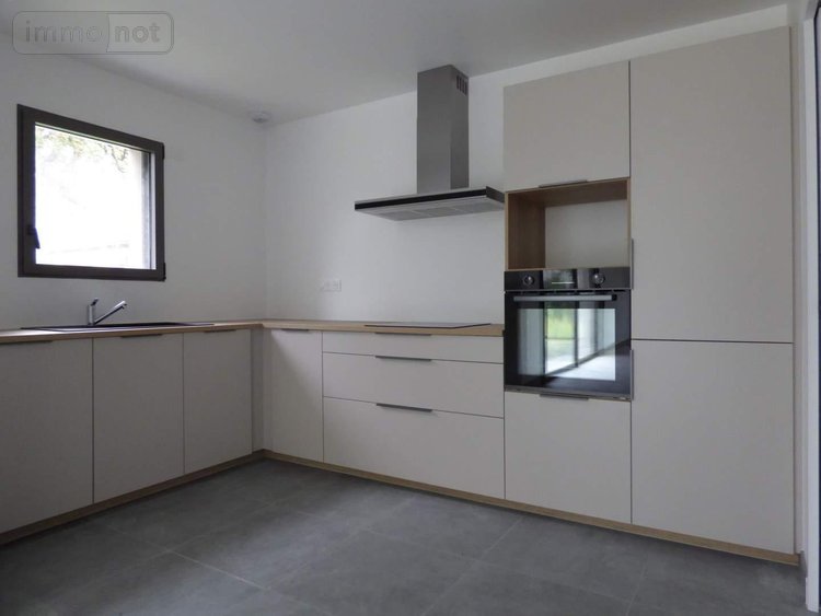 BAIN DE BRETAGNE, Maison contemporaine - RARE ! Au calme et en CENTRE VILLE, contemporaine neuve de 95m² entièrement de plain pied, édifiée sur un terrain de 391m², elle comprend un séjour salon avec poêle à pellet et cuisine ouverte équipée, 3 chambres, sde , carport de 32m², terrasse Sud, volets motorisés, ballon thermodynamique.