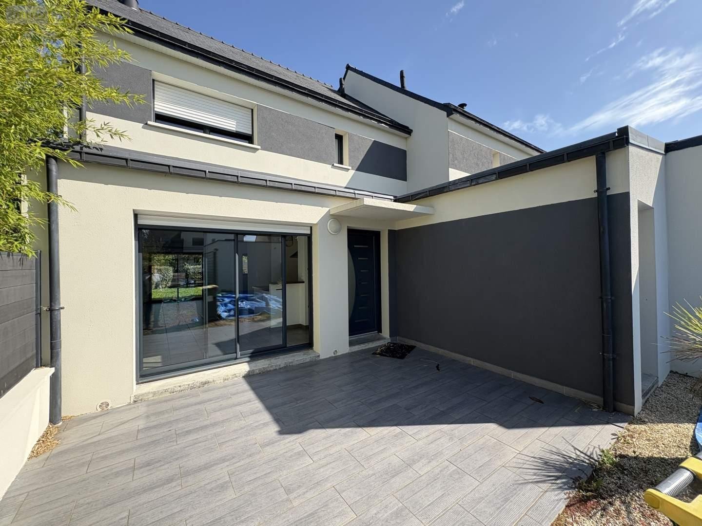 Jardin devant la maison, terrasse et local vélo.
