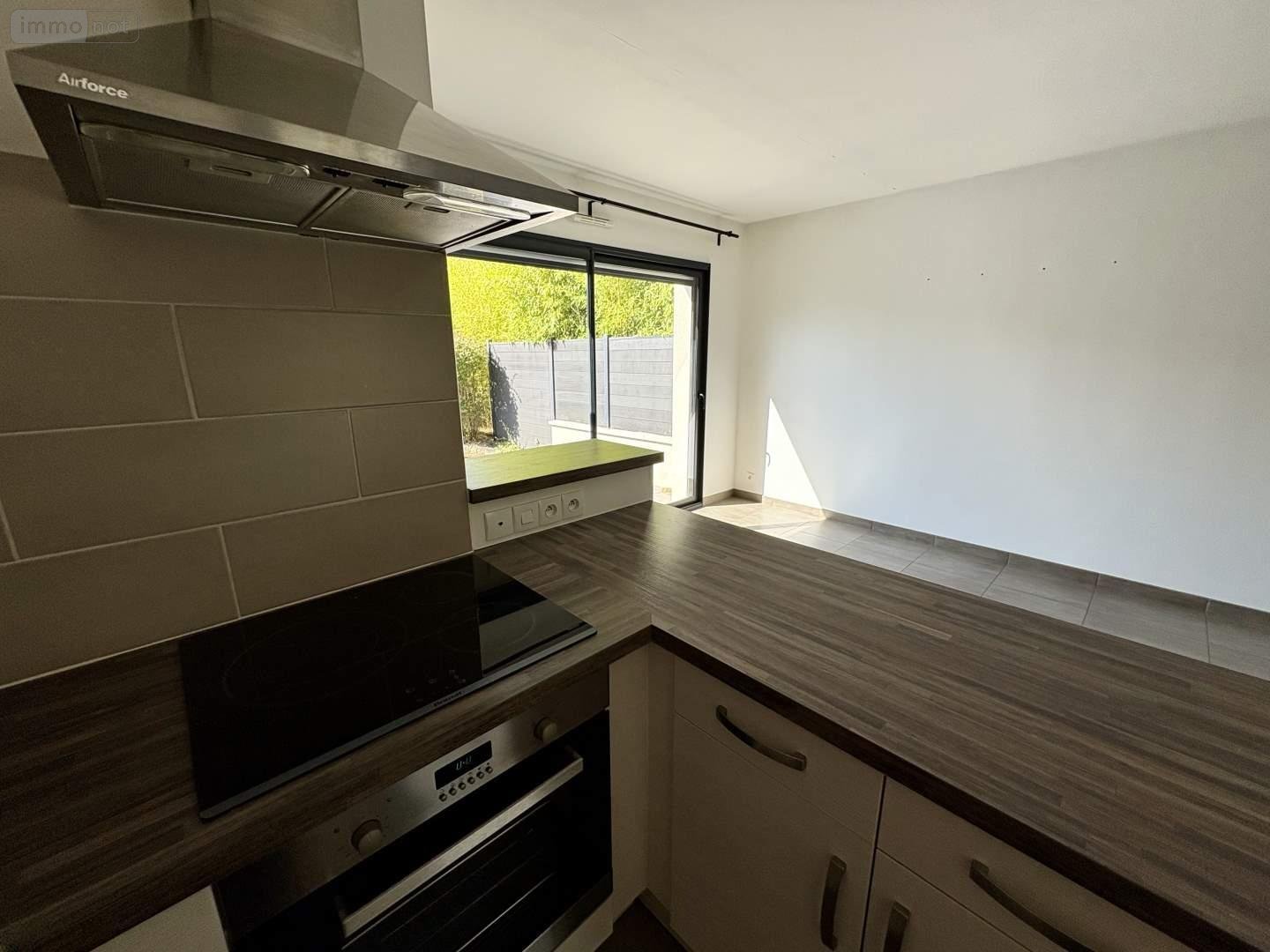 Entrée avec placards, buanderie,/cellier, cuisine ouverte sur salon-séjour, chambre de plain-pieds, salle d'eau, WC