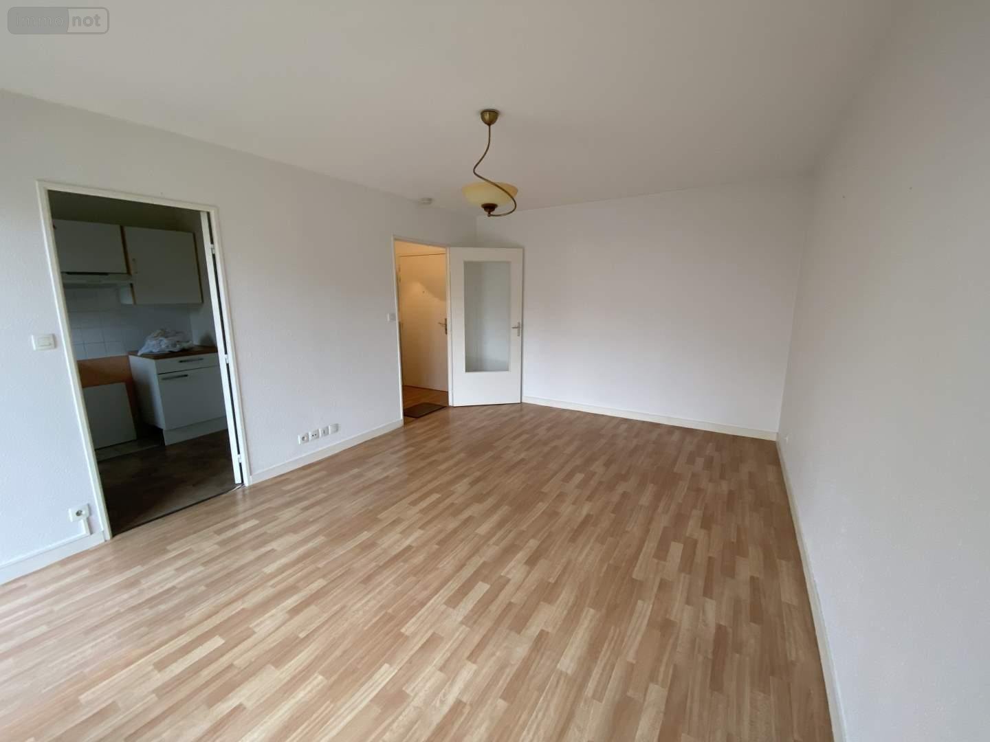 PACE, bd dumaine de la Josserie, centre-bourg avec commerces et arret de bus à proximité, type 2, 46m², 1er étage avec ascenseur,comprenant: entrée avec placard, séjour donnant sur balcon Sud, cuisine aménagée et équipée (hotte, combiné plaque de cuisson vitro/four), une chambre avec placard, salle d'eau, wc. Garage en sous-sol. Loyer mensuel: 600 euros. Charges mensuelles: 45 euros (eau froide comprise). Dépôt de garantie: 600 euros. Frais: 460 euros TTC (honoraires charge locataire). Libre le 15 octobre 2025.