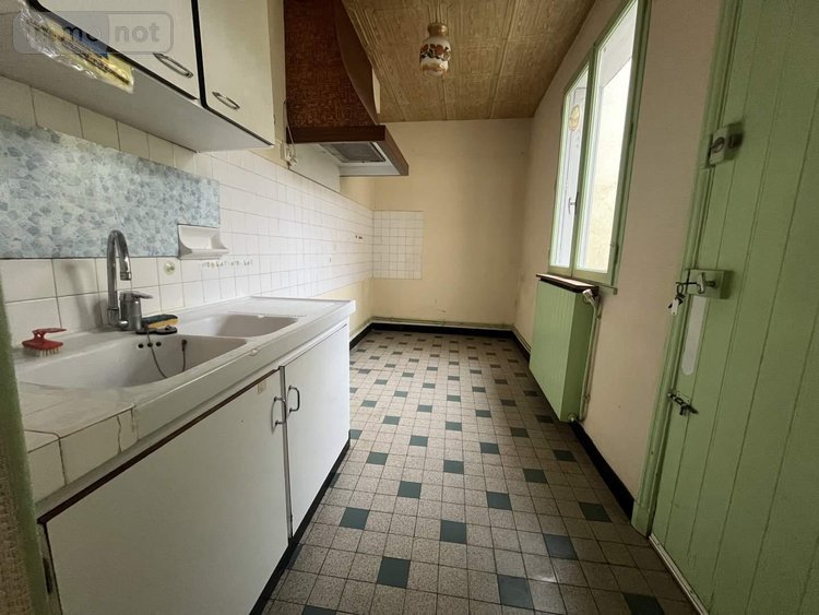 Maison d'habitation d'une superficie de 112m2 habitables avec garage comprenant : une entrée, un salon et une salle à manger parquetés de 32m2 environ avec cheminées et une cuisine en extension.
