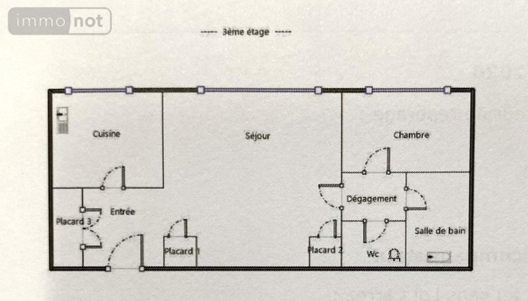 Situé au 3ème étage d' une résidence avec ascenseur, ce T2 bis à rénover comprend : une entrée avec placard, une cuisine, un séjour avec 2 placards, un dégagement, une chambre, une salle de bains et un toilette.