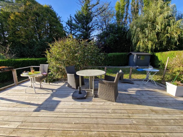 Un jardin clos et clôturé avec une jolie terrasse en bois accessible du séjour.