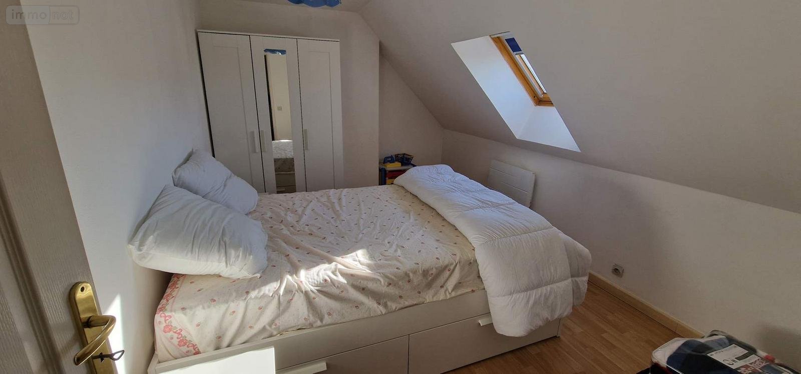 À l'étage : un palier d'environ 21,80 m², une chambre côté Sud d'environ 12 m², une chambre côté Nord d'environ 12 m², en contrebas (7 marches) une pièce d'environ 24 m² non chauffée.