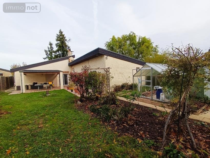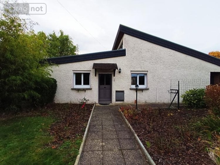d'une entrée, pièce de vie avec cheminée-insert avec un escalier donnant sur une mezzanine pouvant servir de bureaux ou salle de jeux, une cuisine aménagée et équipée, un couloir desservant 3 chambres sur parquet, une salle de bain équipée, une autre pièce pouvant servir de chambre ou salon, il y a un cellier de 14 m² attenant à la maison