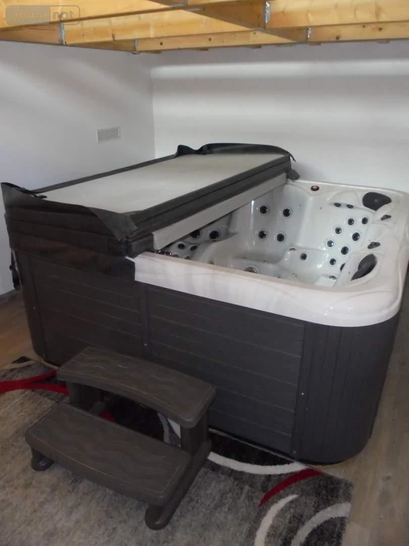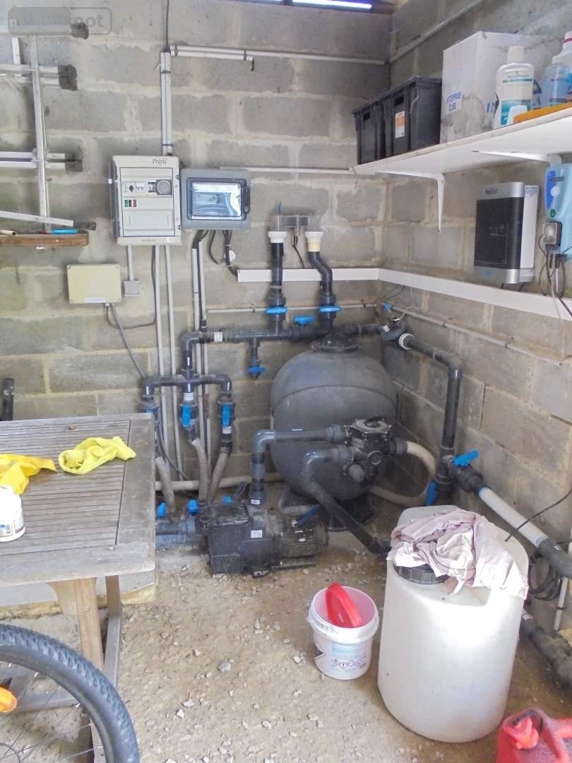 Cave voûtée, grand jardin de 2 699 m2 derrière avec terrasse, barbecue, piscine 4x9 m (volet roulant et clôture avec double portillon, chauffage par pompe à chaleur), garage avec porte sectionnelle électrique et local technique de la piscine.