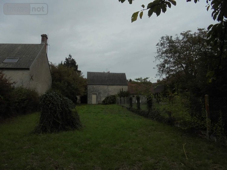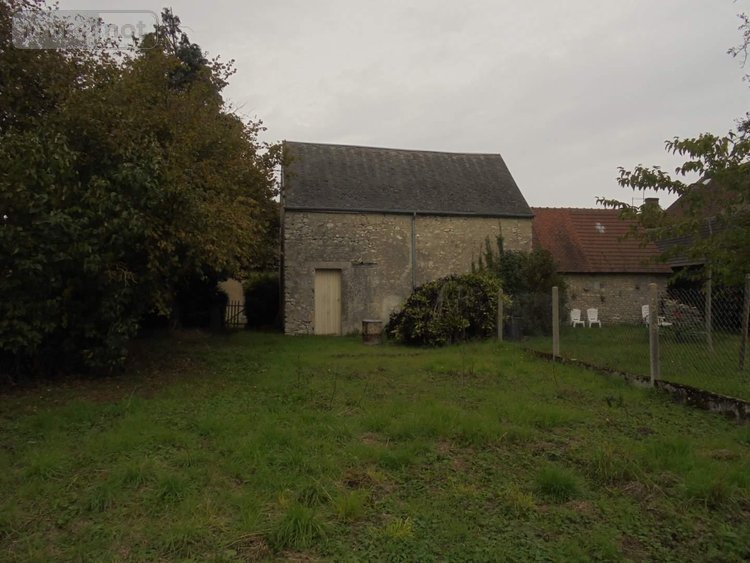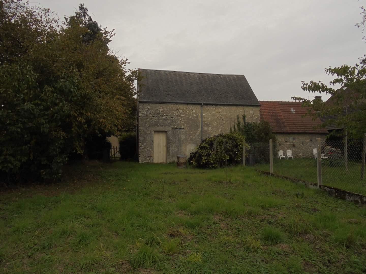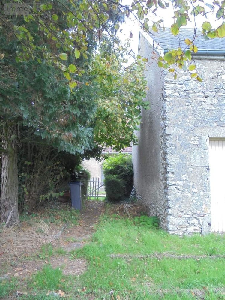 Sol en terre battue, toit en ardoises losangées, avec petit bâtiment adjacent (toit en tuiles), et grand jardin clos derrière. Possibilité de rentrer un véhicule sur le terrain, de faire un garage ou carport.