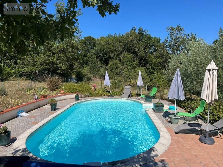 Un garage ouvert complète ce bien. Vous profiterez également d'une piscine et d'un terrain arboré attenant d'une superficie totale de 33 ares 78 centiares (sections AH n°473 et 474).