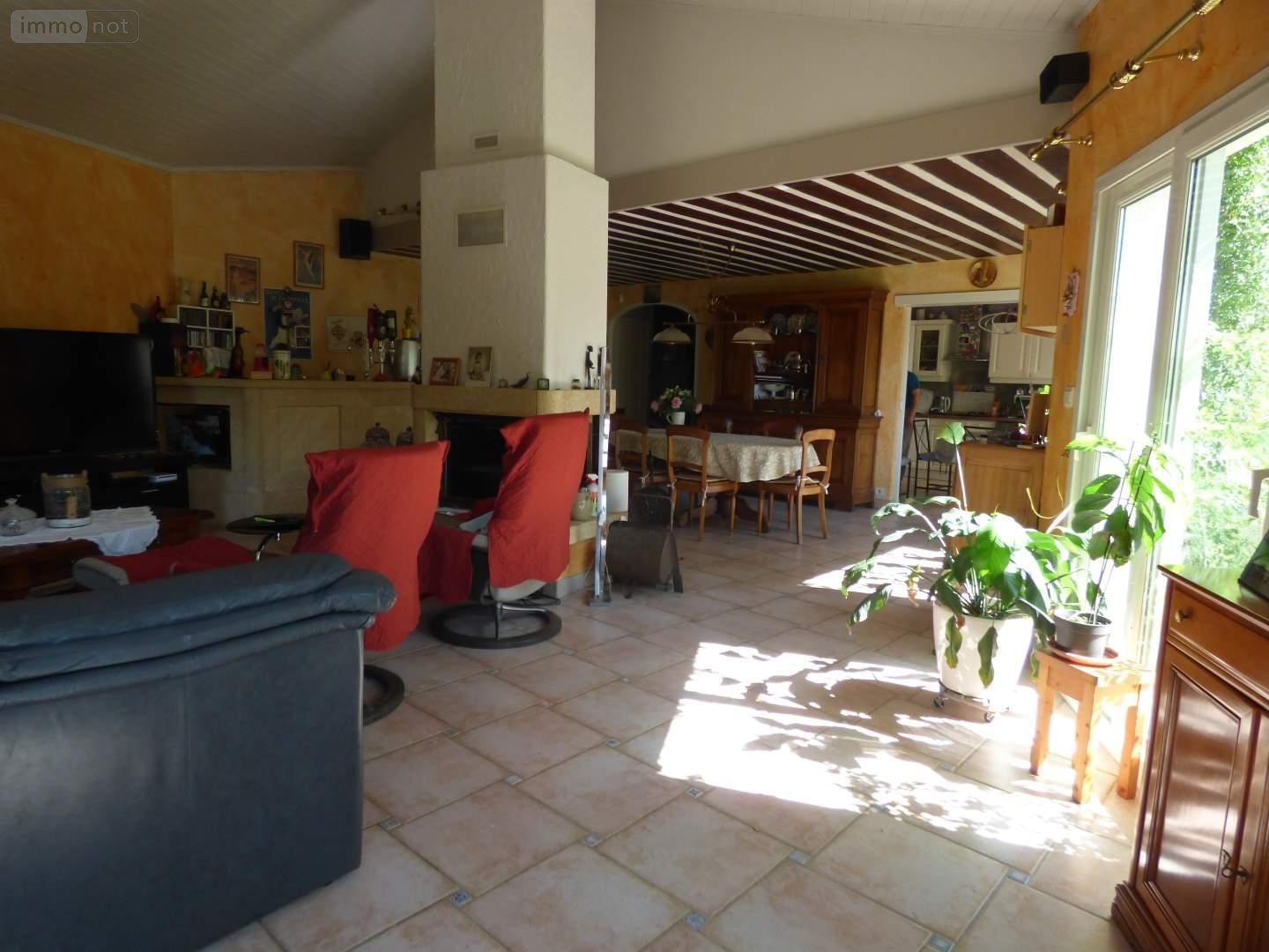 Au rez-de-chaussée : Un hall d'entrée, une grande pièce de vie avec séjour, salle à manger et cheminée centrale, une cuisine équipée séparée, un cellier, un dégagement avec dressing, 1 chambre avec salle de bains privative, une chambre, une buanderie et des toilettes.