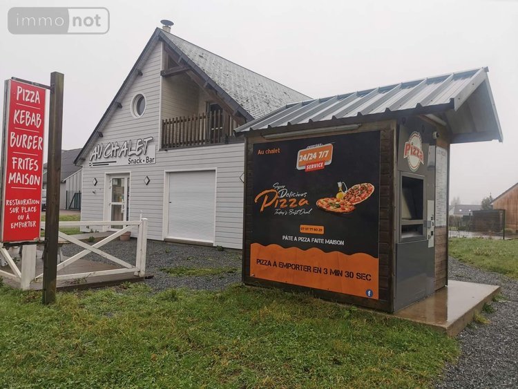 LESSAY, Pizzeria -Fond de commerce. Local commercial avec une salle, une cuisine un espace lavabo avec WC pour le publique. A l'étage, une grande mazzanine. Un distribeuteur de pizza en location 24/24.