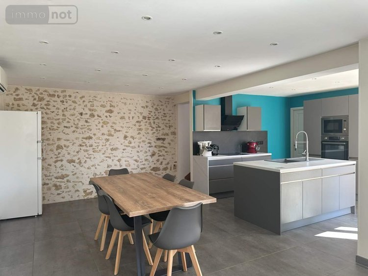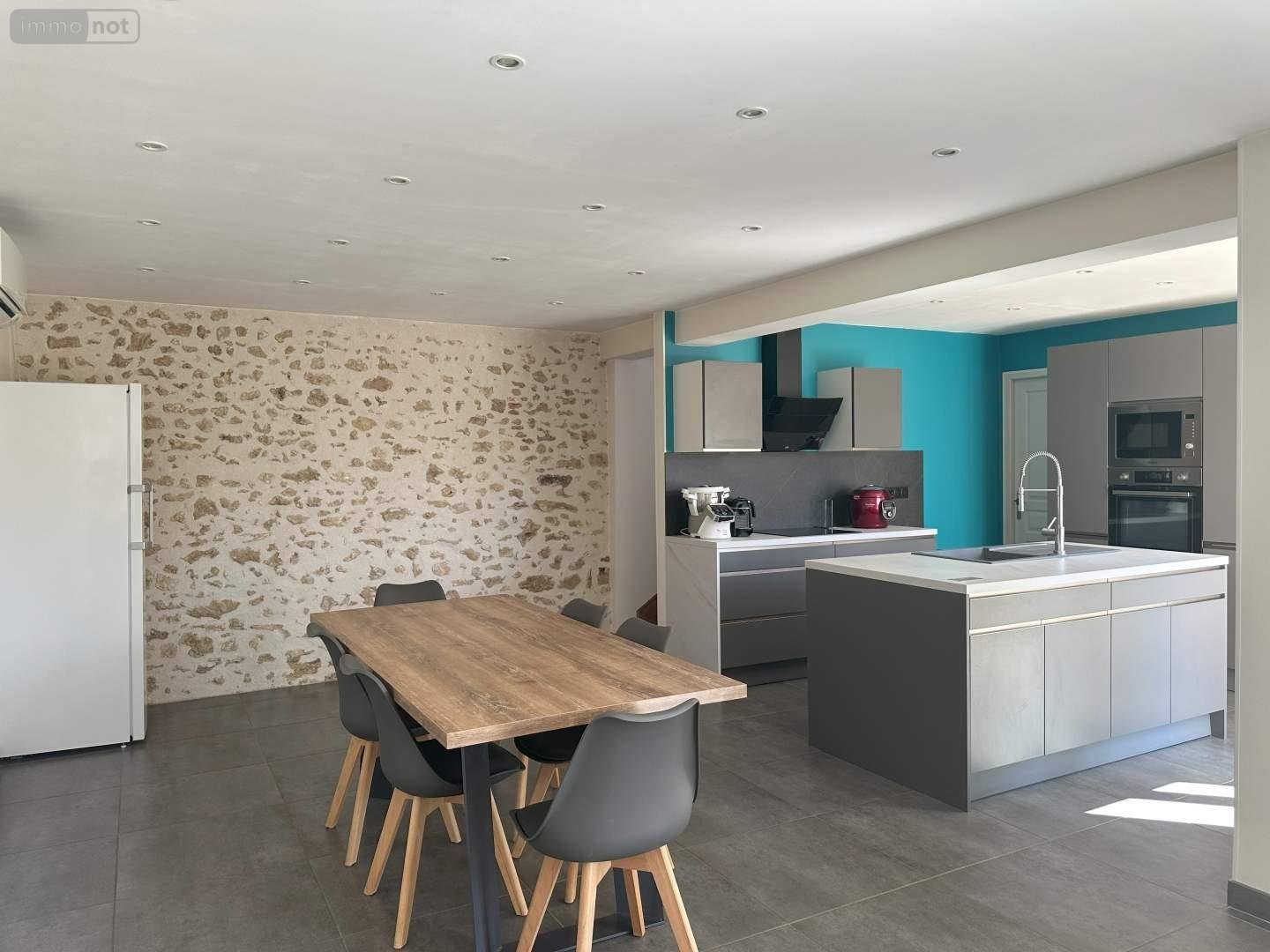 Une maison rénovée comprenant au rez de chaussée : entrée, buanderie-cellier, WC, cuisine aménagée ouverte sur salon-séjour et cellier.