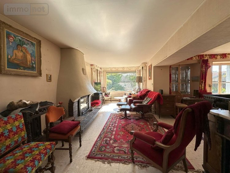 Une maison comprenant au rez de chaussée : Grande entrée, couloir desservant bureau, salle d'eau avec WC, une chambre, salle à manger, salon avec cheminée insert et cuisine.