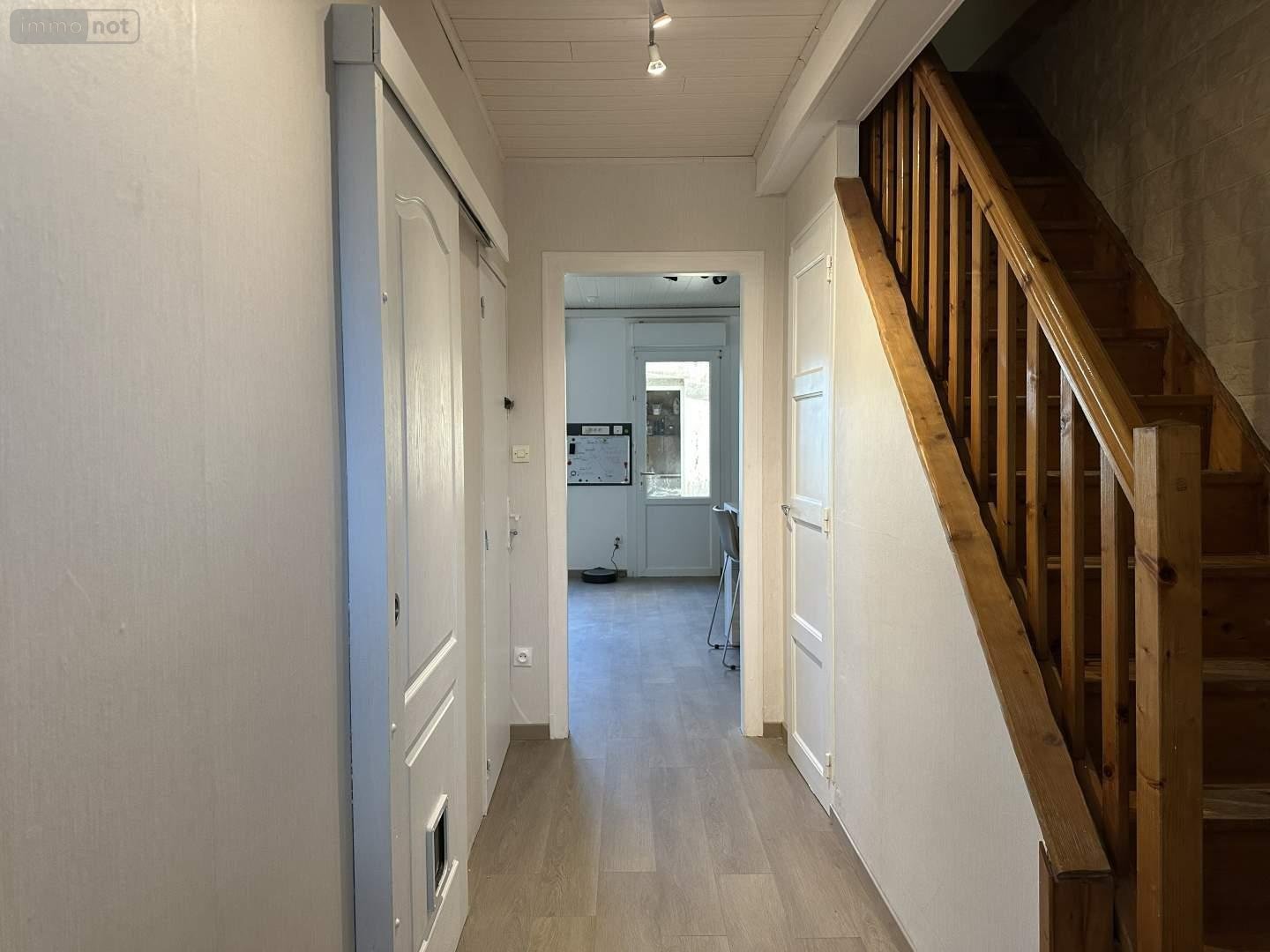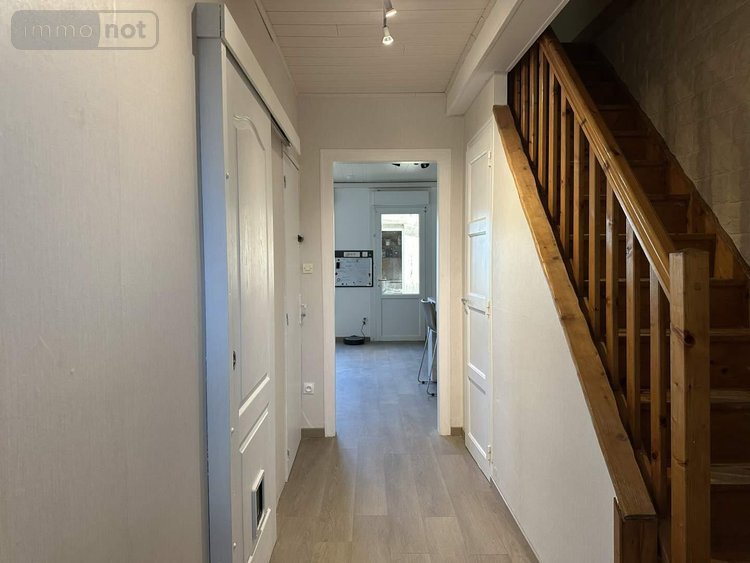 Une maison proche du centre-ville et des écoles, comprenant au rez-de-chaussée : entrée, couloir, WC, salle d'eau, placard, salon-séjour, cuisine amanégée, couloir desservant buanderie, deux chambres.