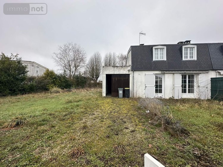 Une maison mitoyenne d'un côté, comprenant au rez de chaussée : entrée, WC, cuisine, séjour.