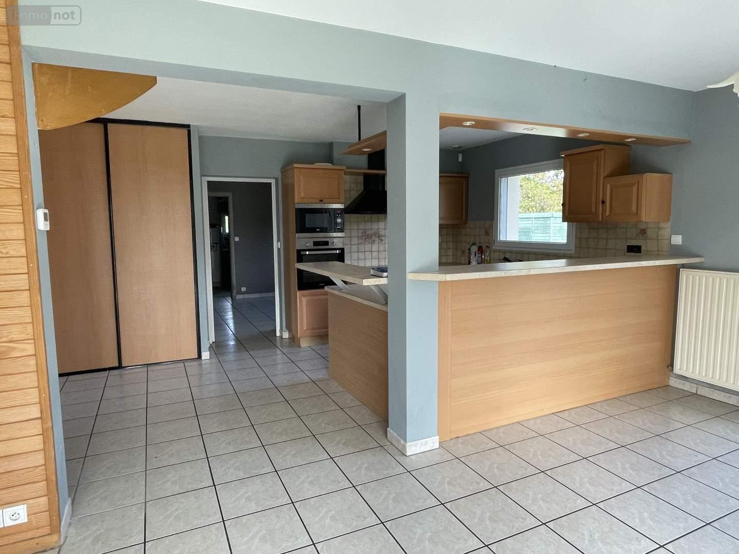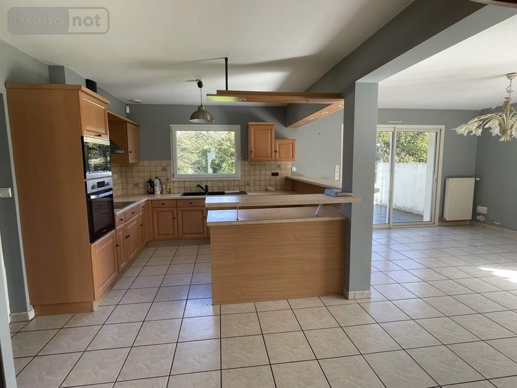 Elle se compose en rez-de-chaussée d'une entrée desservant une cuisine aménagée ouverte sur un salon-séjour lumineux de 35 m2 et donnant sur terrasse et jardin à l'arrière, une chambre de plain-pied de 11.50 m2, une salle d'eau, un wc, et une grande arrière-cuisine/buanderie. Accolé : un garage avec une pièce insonorisée pouvant servir de bureau ou autres.