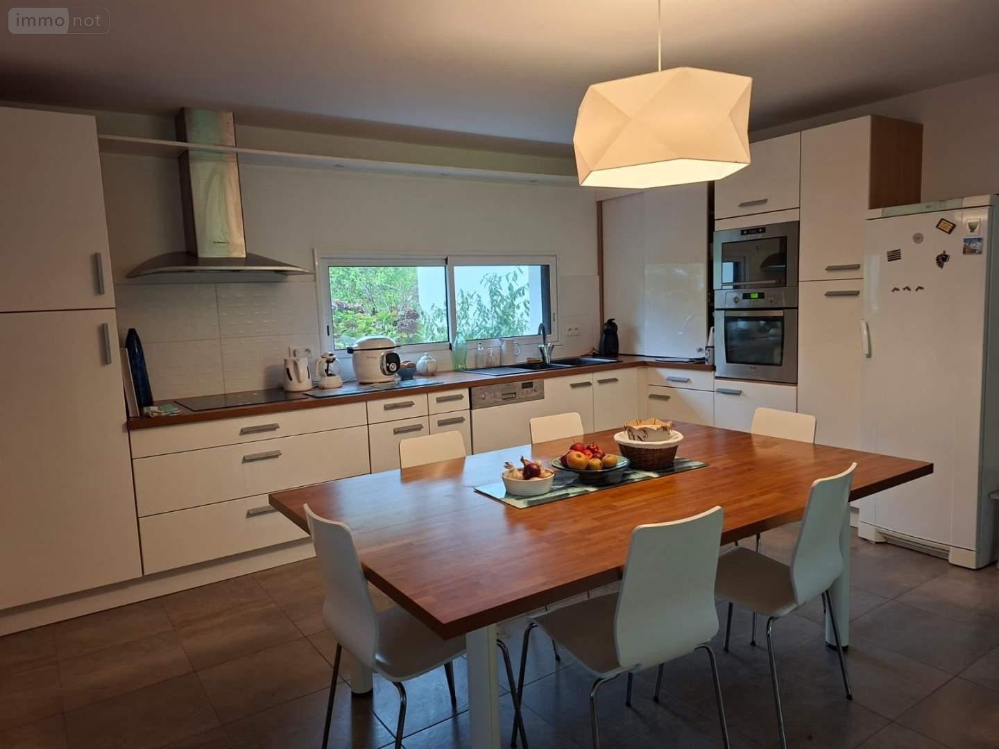 Offrant une surface de 193 m2 habitable, elle est distribuée au rez-de-chaussée d'une pièce à vivre lumineuse de 50 m2 avec espace cuisine/coin repas et à la suite un grand salon donnant sur la terrasse et le jardin au Sud, une buanderie, trois chambres de plain-pied dont deux avec salle d'eau privatives, et un wc indépendant.