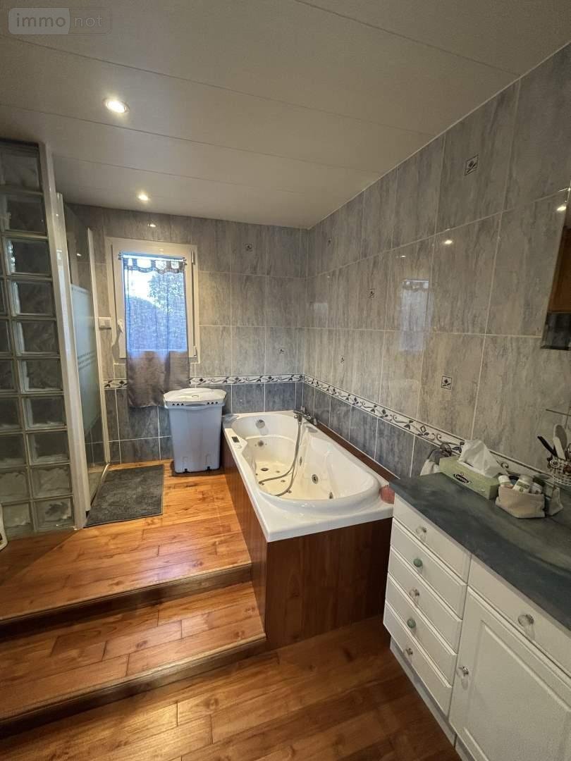 -Au rez-de-jardin : un sas d'entrée vitré donnant sur un hall d'entrée avec placard, une cuisine aménagée et équipée avec cuisinière à bois, une grande pièce de vie avec insert bois double foyer, un bureau donnant sur le jardin, une salle de bain avec baignoire balnéo et douche, un wc, une chambre, ainsi qu'une chambre parentale avec dressing.