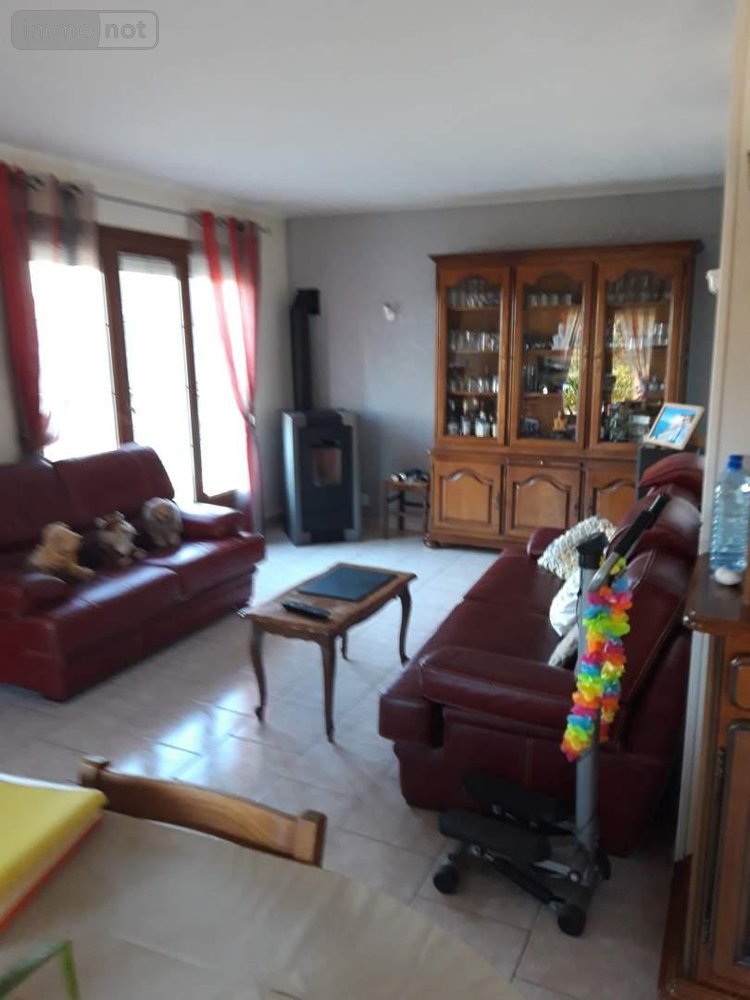 entrée, salle salon poele granulés grande cuisine aménagée équipée, 1 chambre salle de douche wc à l"étage bureauy 2 chambres communicantes sous sol cave garage laverie atelier chaufferie chalet bois dependance chauffage gaz Terrain 1OOO M2 Bel environnement calme