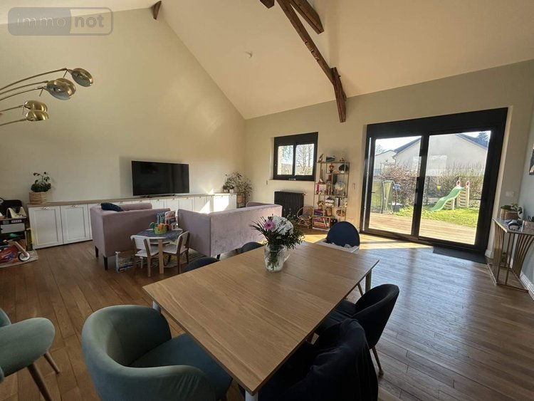 Au-rez-de-chaussée: une entrée sur cuisine aménagée et équipée, un cellier, une salle-à-manger avec insert, un grand séjour lumineux, un wc.