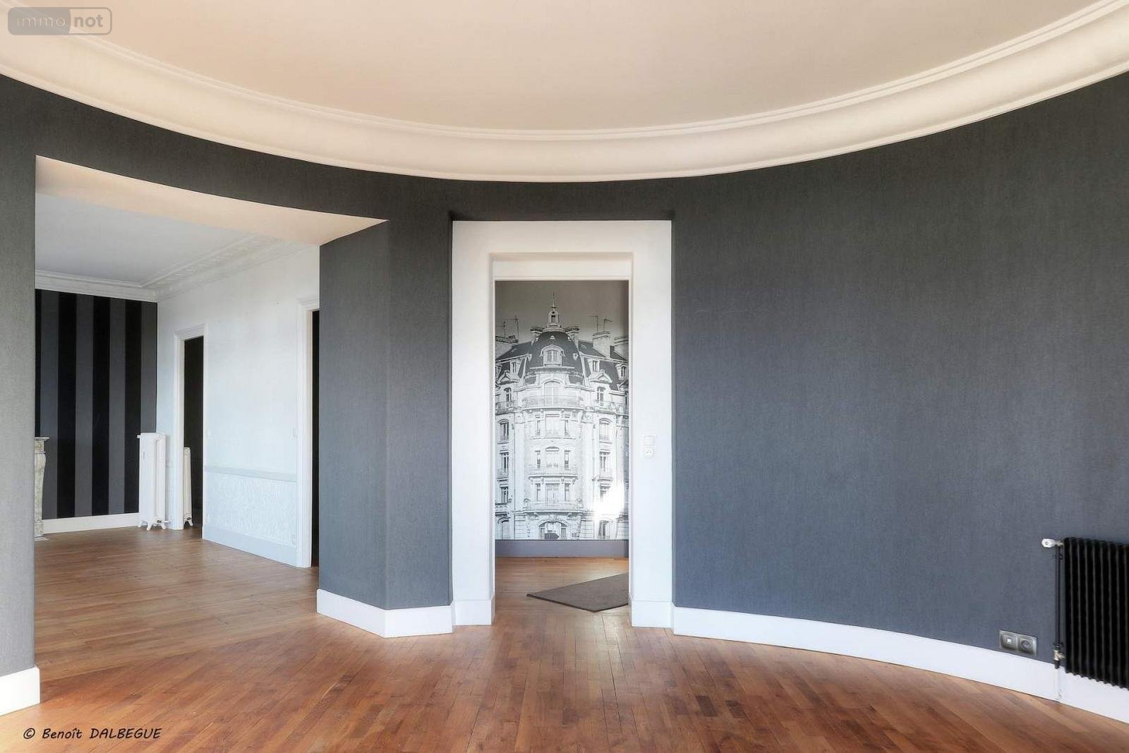 - Entrée avec dégagement, coin toilette avec lave- mains et WC, sublime séjour-salon en rotonde avec cheminée, boiseries, parquet, trois grandes chambres avec dressing et placards aménagés, une jolie cuisine equipée avec son coin repas, deux belles salles d'eau dont une avec WC.