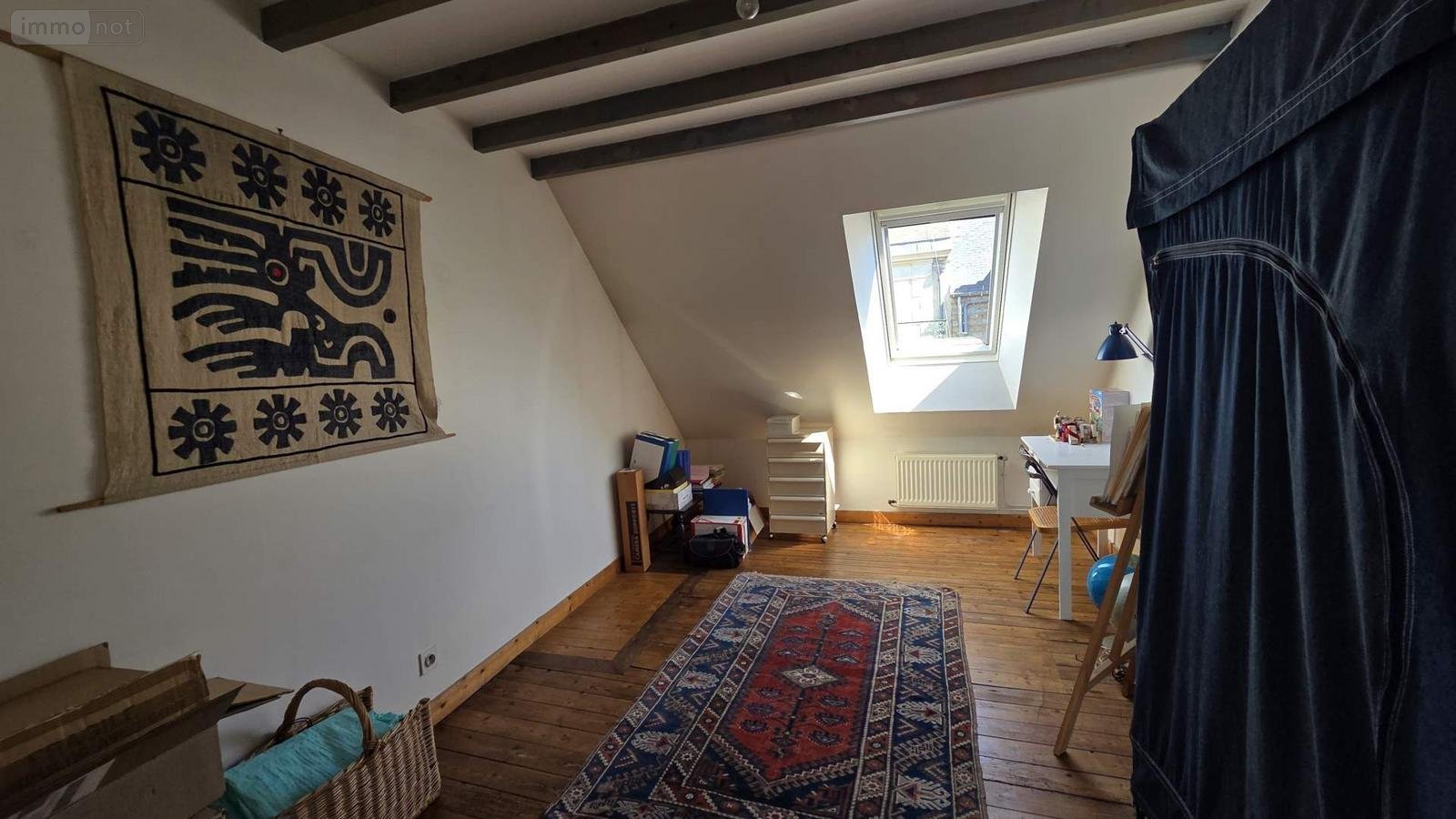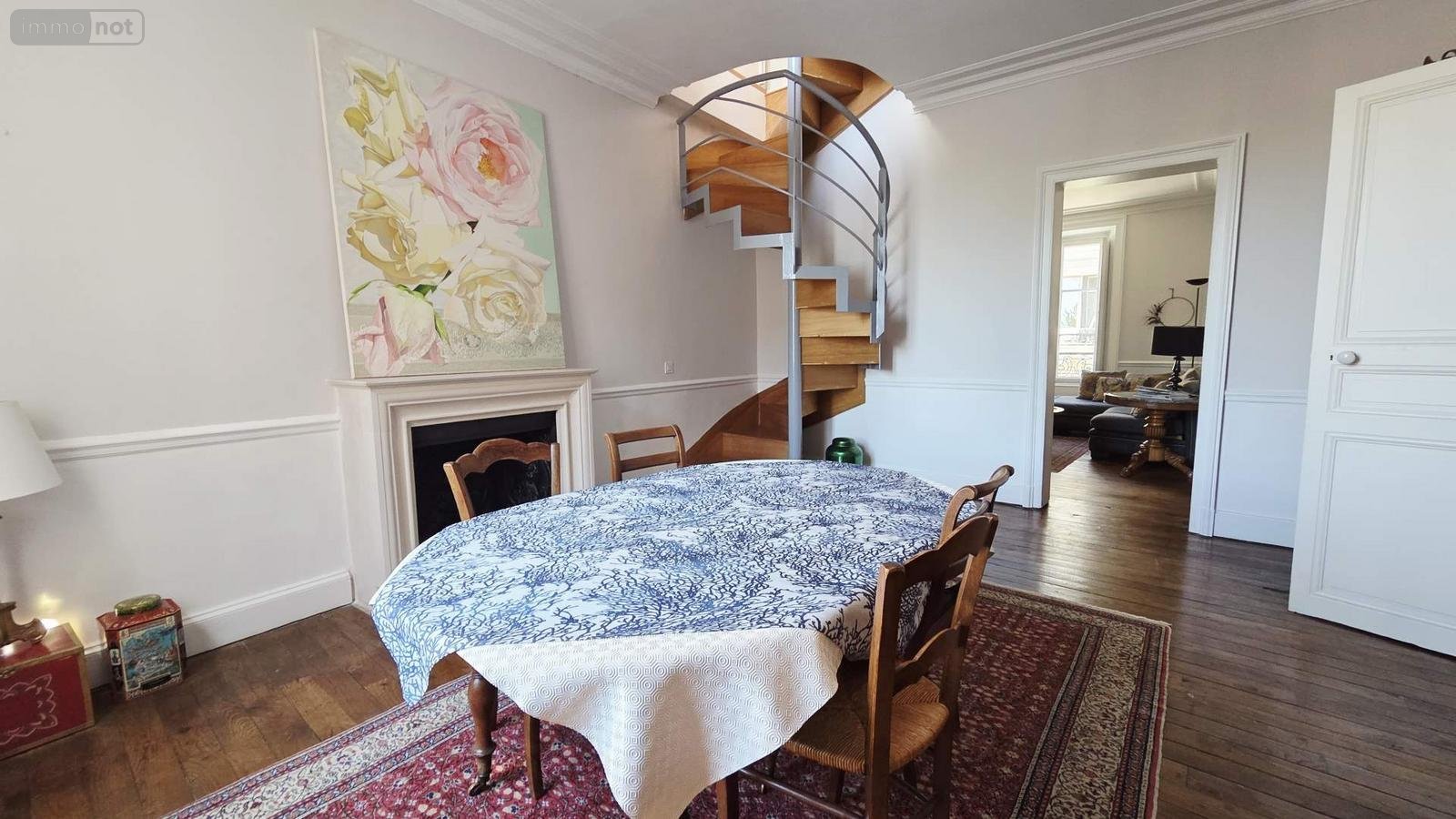 RENNES, T6 DUPLEX - OFFICE NOTARIAL NICOLAZO & ASSOCIE, RENNES QUARTIER VISITATION/HOCHE, Situé dans un secteur recherché et dans une rue calme/semi-pietonne, superbe appartement traversant en duplex de 191m² utiles (145m² habitables) situé au 3eme et 4eme étage d'un immeuble en pierres du 19eme siècle. Il comprend au 1er niveau un dégagement avec placard, une salle à manger de 20m² avec cheminée avec vue dégagée , un salon de 17m² , une cuisine, une chambre de 16m² avec dressing, une salle de bains, deux bureaux et un WC. A l'étage, salon de détente très lumineux avec verrière offrant une jolie vue sur Rennes et mezzanine de 28m² au sol , 3 chambres mansardées, salle d'eau, WC, petit coin cuisine, dégagement permettant l'accès aux parties communes. Une cave voutée en sous-sol.