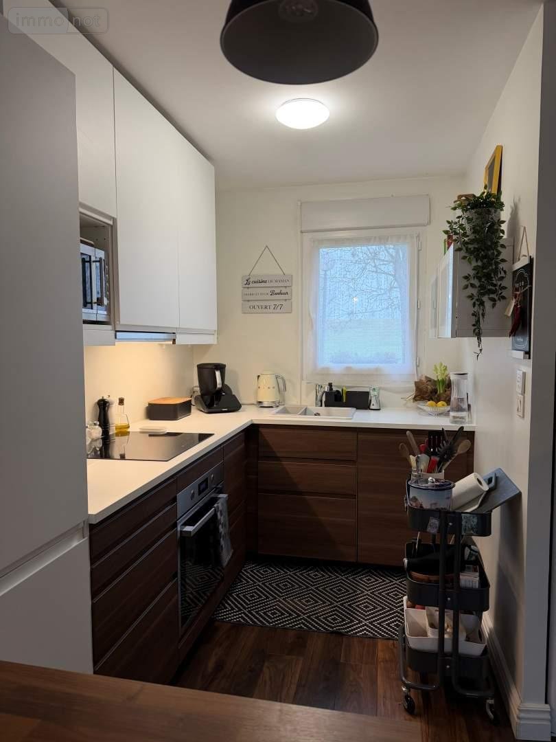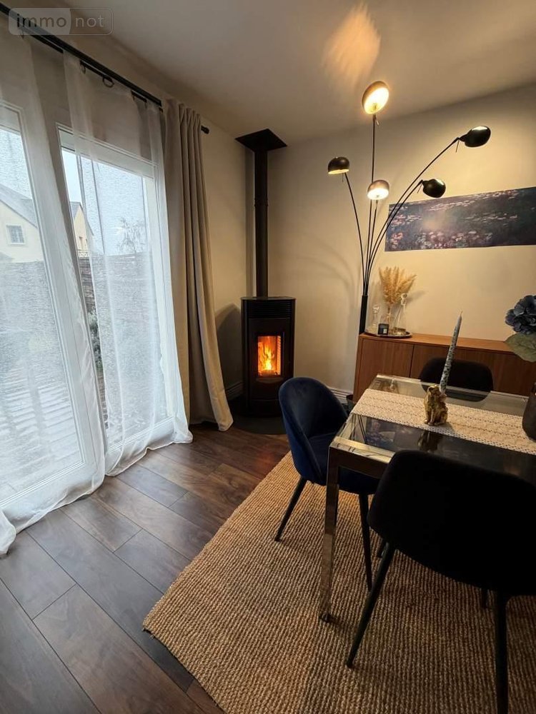 - au rez-de-chaussée : entrée avec placard, salon/salle à manger avec poêle à granulés et cuisine ouverte aménagée et équipée (réfrigérateur, four, plaques, hotte et lave-vaisselle), salle d'eau avec wc,