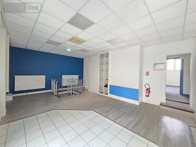 Un local commercial de 125.41 m² comprenant un accueil, trois bureaux, une cuisine en sous-sol, toilette.