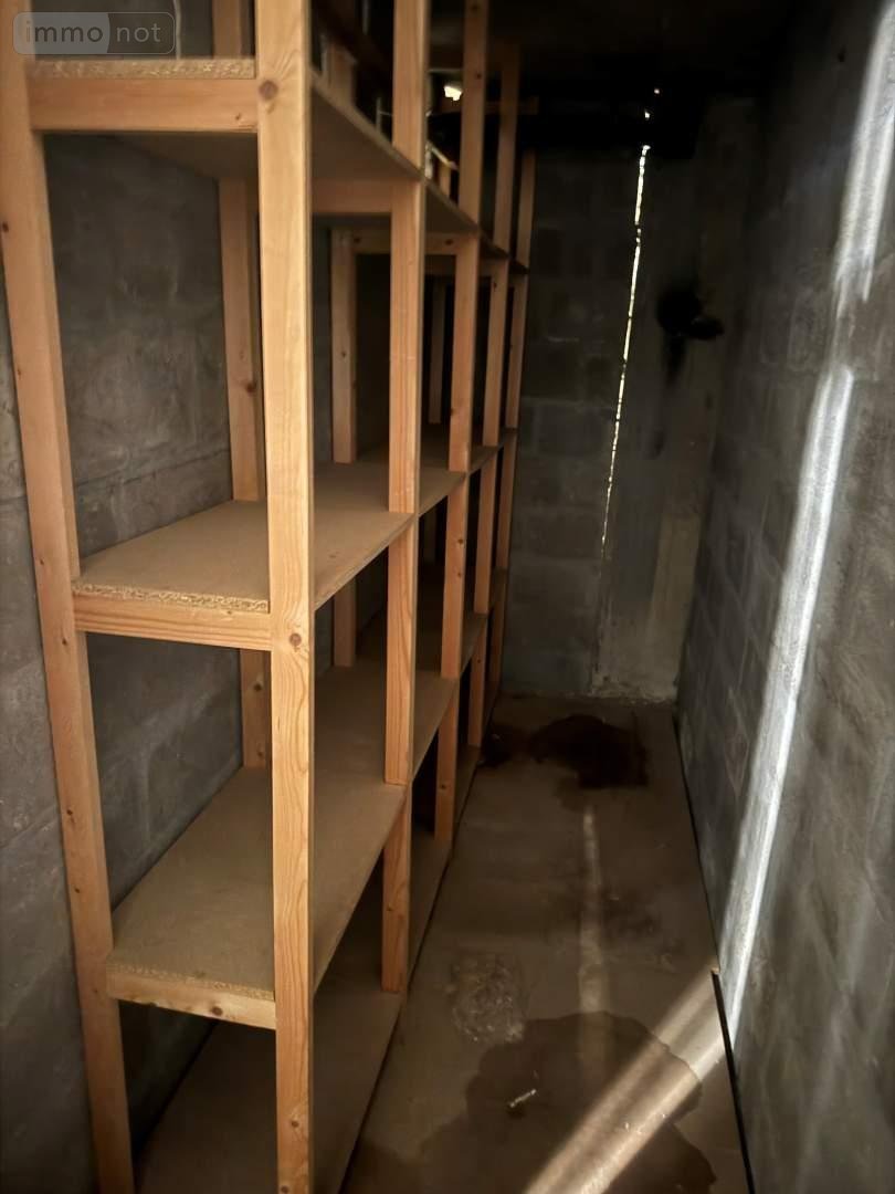 Cave avec étagère au sous-sol. Fenêtre bois double vitrage et volets roulants solaire.