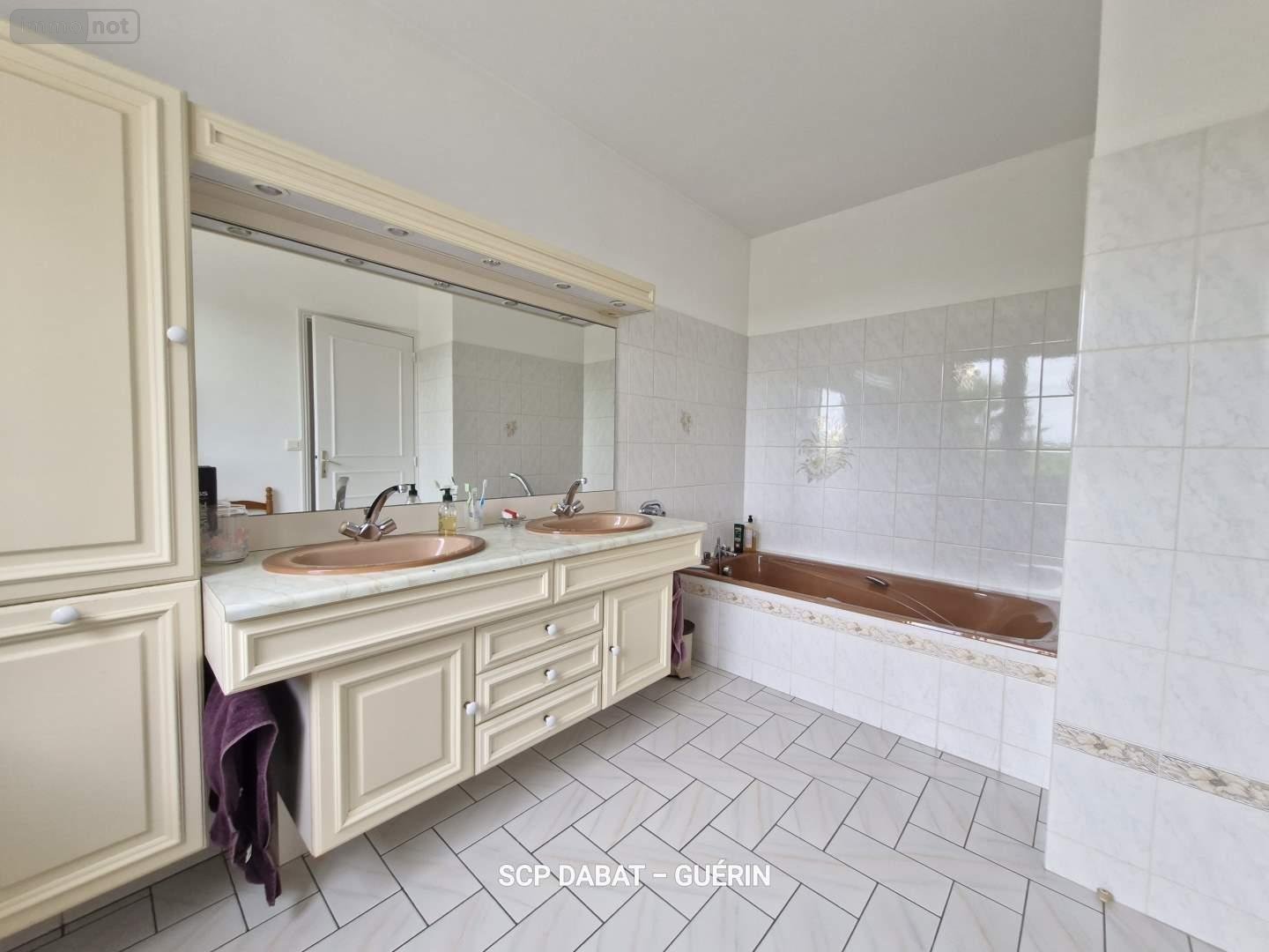 - Au rez-de-chaussée : séjour double d'environ 41 m² ouvert sur une cuisine aménagée et équipée, entrée, chambre, salle de bains avec double vasque, WC indépendant.
