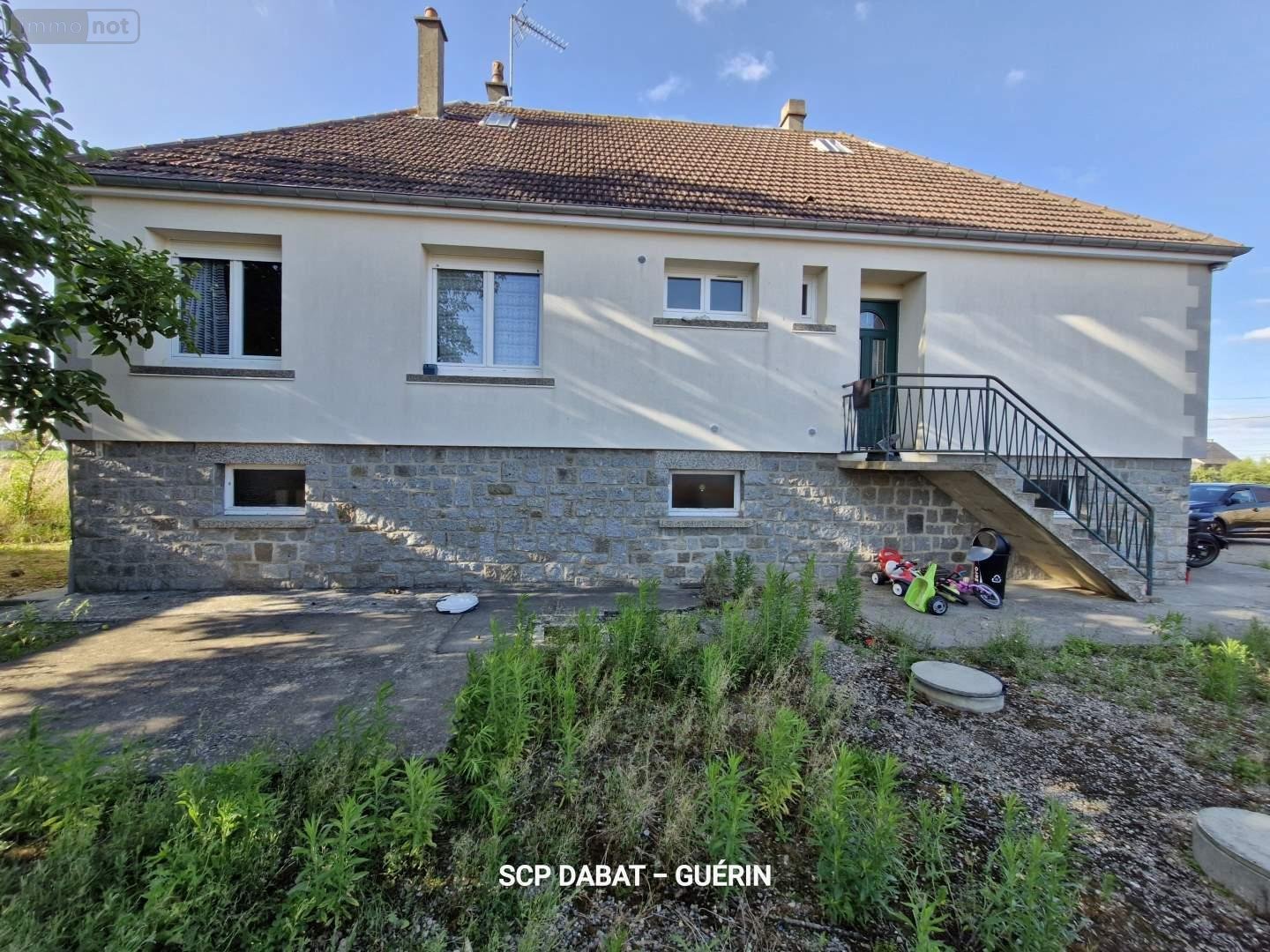 - En rez-de-chaussée surélevé : entrée, cuisine aménagée/équipée ouverte sur séjour avec cheminée-insert, couloir, salle d'eau, quatre chambres, WC.