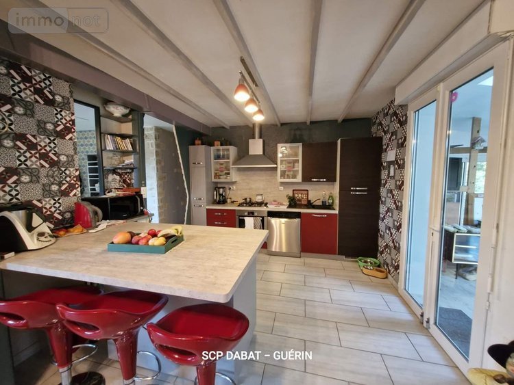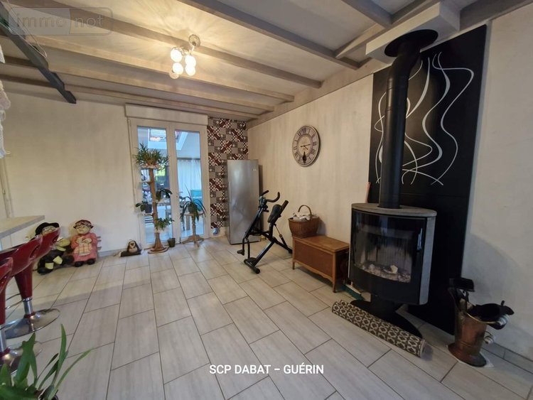 Le bien est composé comme suit : entrée, cuisine aménagée/équipée ouverte sur le séjour double avec poêle à bois, véranda de 15 m², couloir, trois chambres, salle d'eau et WC séparés.