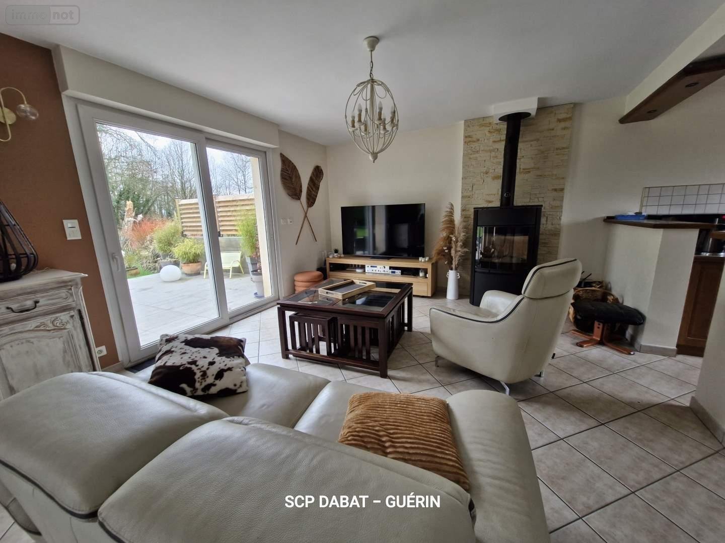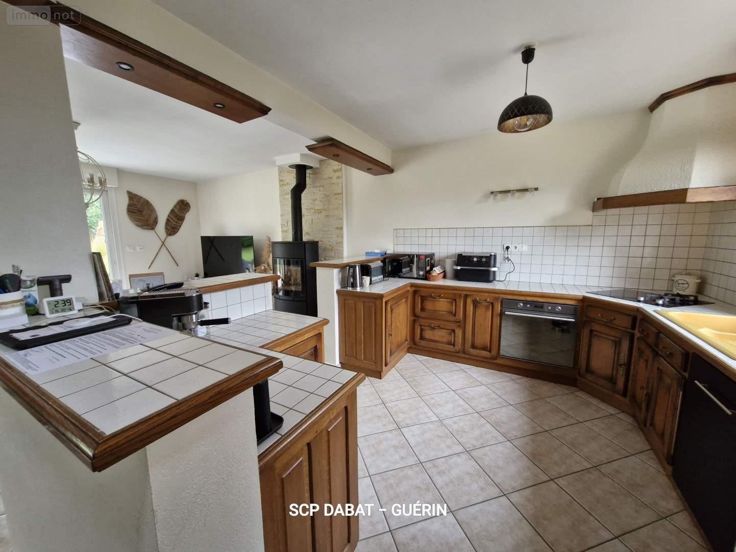 - Au rez-de-chaussée : entrée, séjour double d'environ 39 m² avec poêle à bois changé en 2025, cuisine aménagée/équipée, WC, chambre avec salle d'eau et dressing.