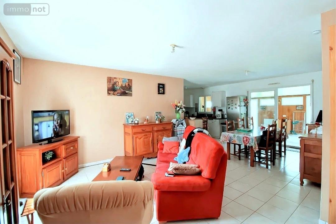 A vendre - Maison de plain-pied avec dépendances. Elle comprend un espace vie de 67 m2 avec une salle de séjour, cuisine ouverte, une grande pièce à finir. Une partie nuit avec un couloir desservant 3 chambres, SDE et WC.