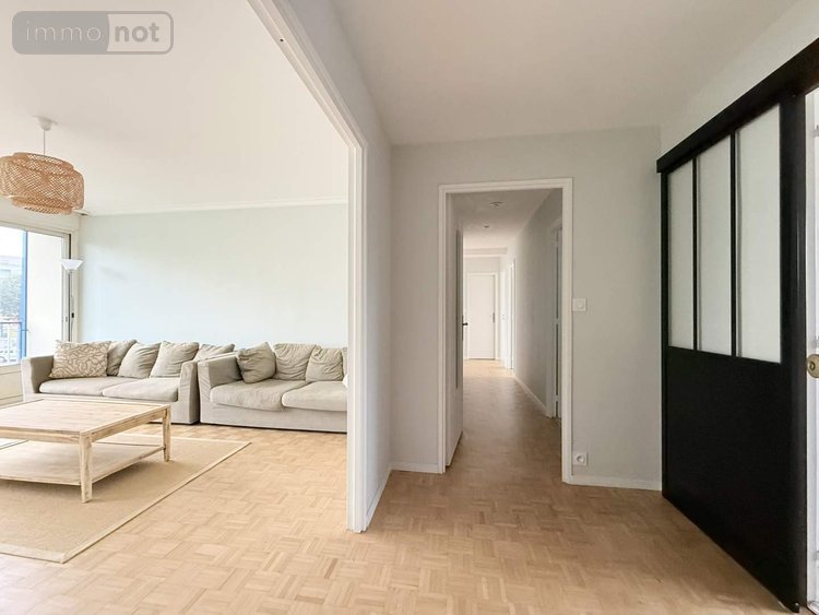 Au deuxième étage d'un immeuble au pied des commerces, du lycée et du parc de Bréquigny, Appartement 4 chambres rénové de 102m² avec balcon OUEST, cave de 15m² et un stationnement privatif.