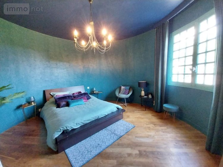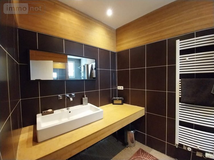 A l'étage : une très grande mezzanine, un dégagement desservant 3 belles chambres, une salle de bains avec WC et une pièce sauna.